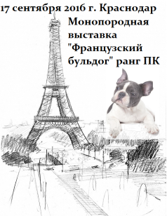 Кубанская Кинологическая Федерация (ККФ) Приглашает Вас принять участие в выставке ранга САС ЧФ «Осень Кубани 2016», которая будет проводиться
