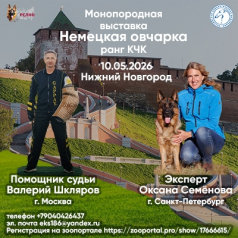 Приглашаем в Нижний Новгород на монопородную выставку Немецкой овчарки ранга КЧК. Фигурант Валерий Шкляров.